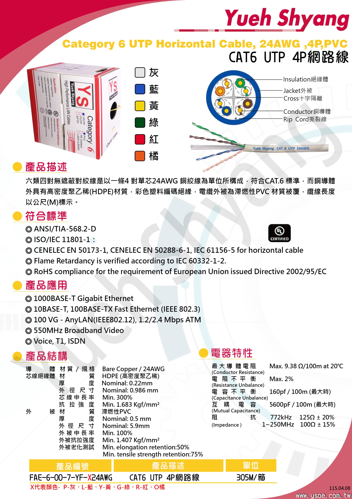CAT6 UTP 4P網路線(24AWG)