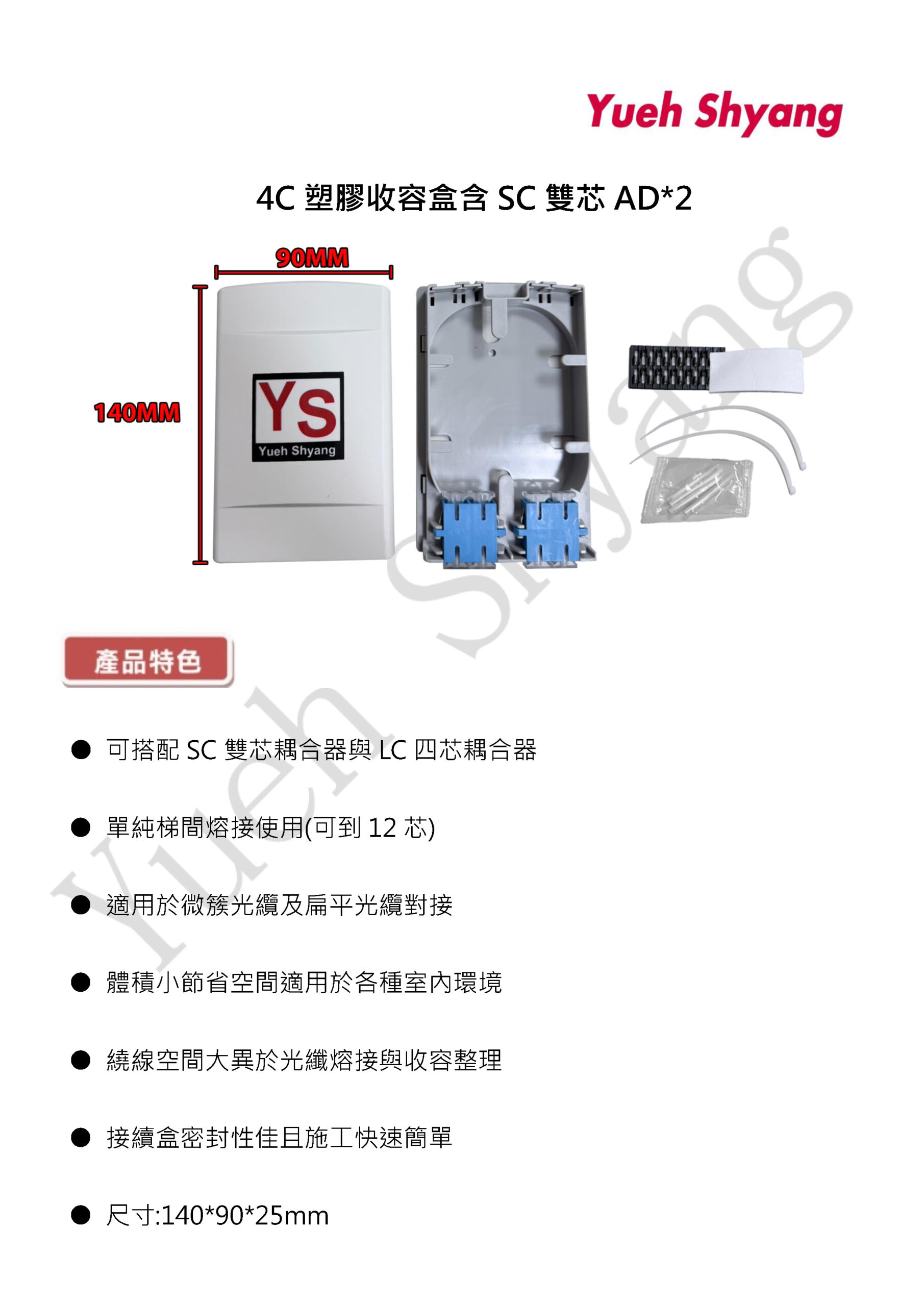 YS-4C塑膠收容盒含SC雙芯ADX2