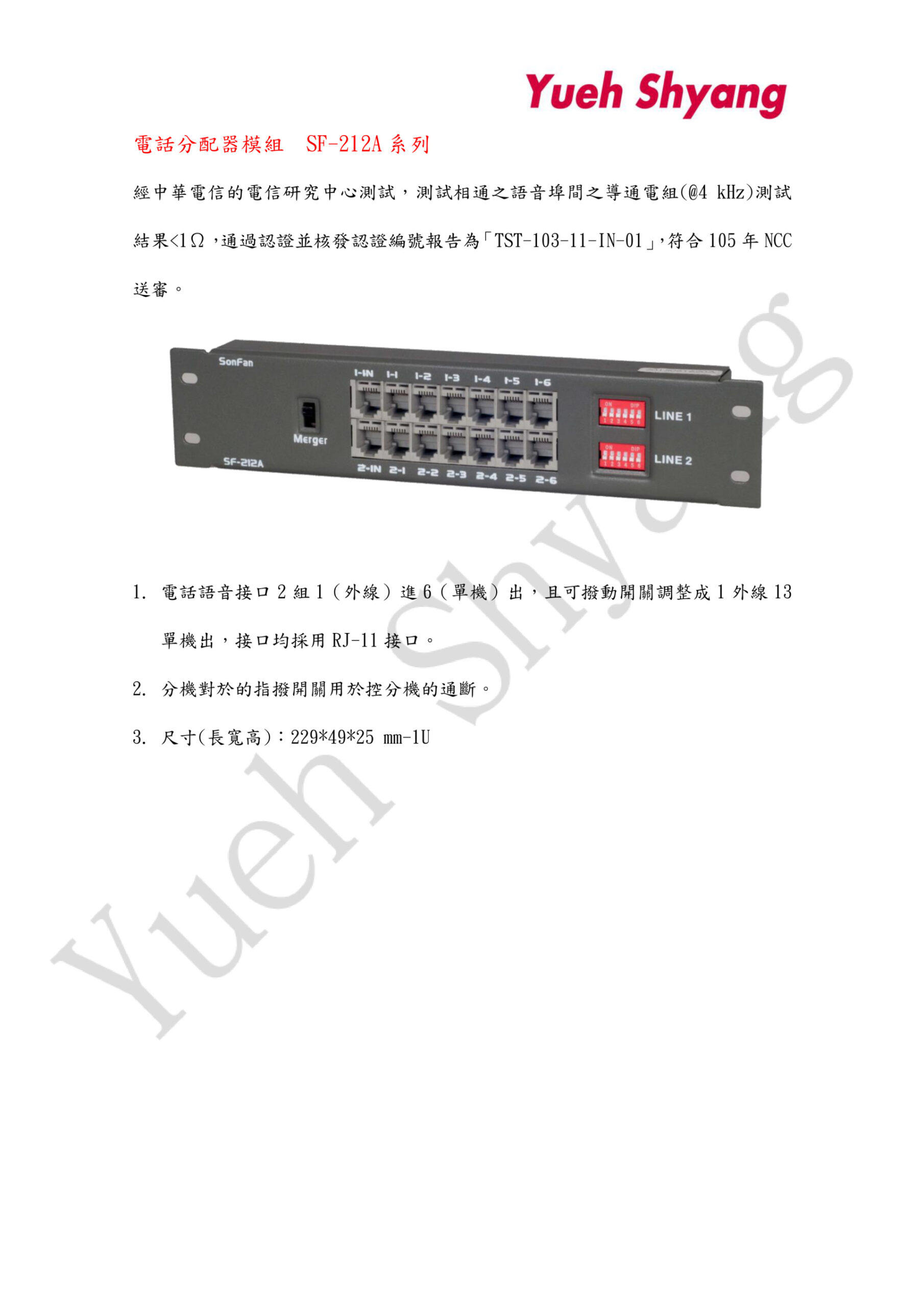 經中華電信的電信研究中心測試,測試相通之語音埠間之導通電組(@4 kHz)測試結果<1Ω,通過認證並核發認證編號報告為「TST-103-11-IN-01」,符合105年NCC送審。